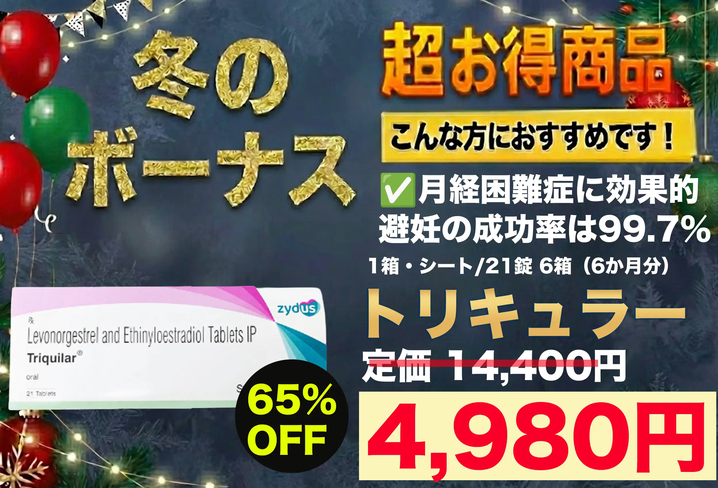 【冬のボーナス】トリキュラー|PMSや月経困難症に効果的な低用量ピル